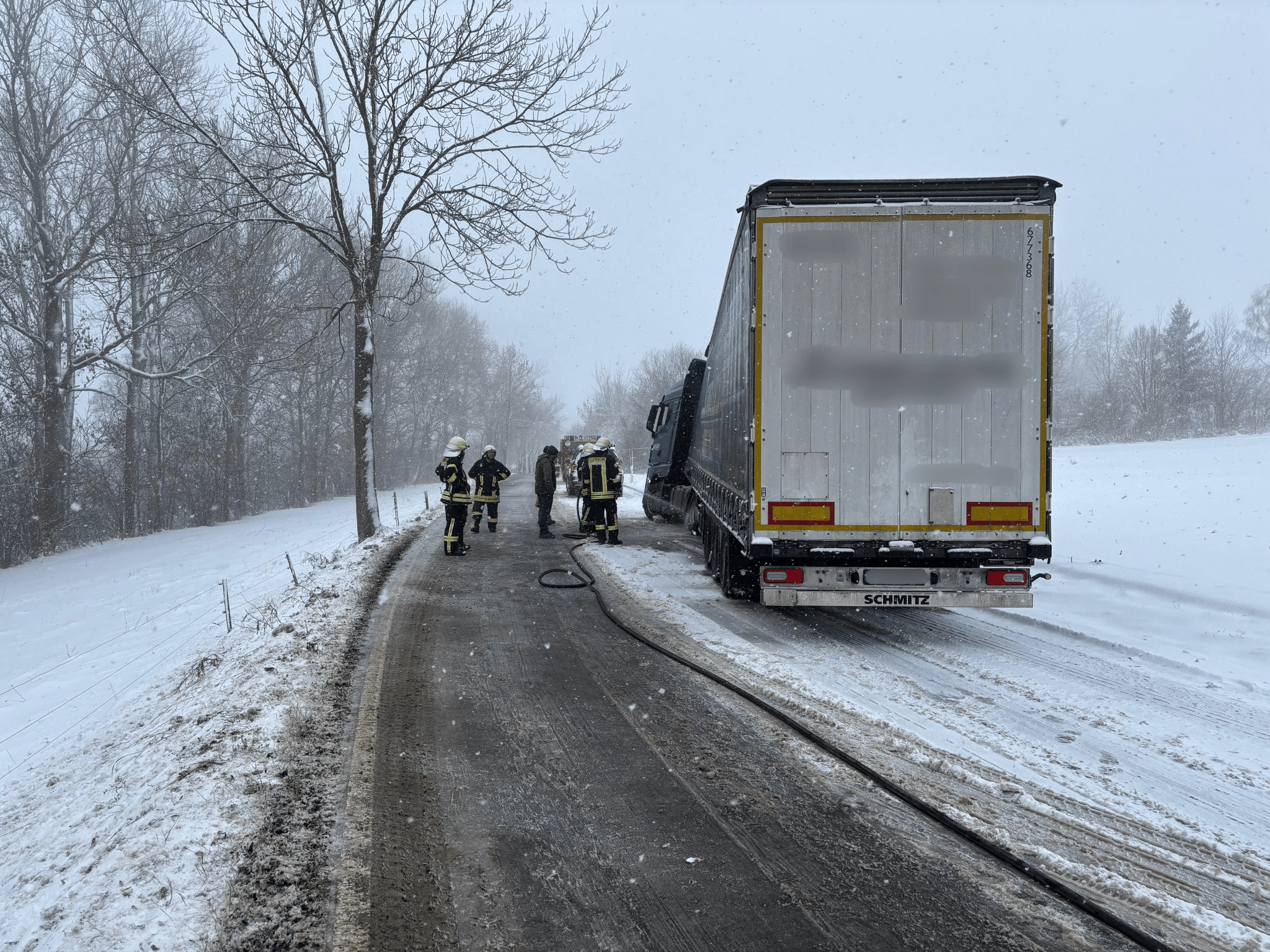 Aufgrund der Witterung fuhr sich ein LKW auf der S189 am Ortseingang Kleinbobritzsch fest. Der LKW-Fahrer versuchte noch aus eigener Kraft seinen Sattel zu befreien, was ihm leider aufgrund der Straßenverhältnisse nicht gelang. Durch die durchdrehenden Reifen fing in Folge einer der Reifen an zu brennen.