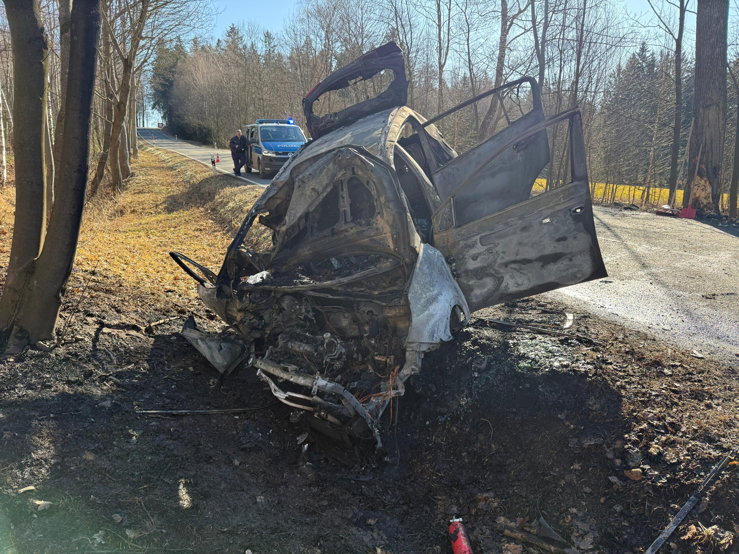 Es kollidierte ein Fahrzeug mit einem Baum und fing infolgedessen sofort Feuer. Als wir eintrafen, war die verletzte Person bereits aus dem Fahrzeug gerettet. Wir übernahmen die Versorgung des Patienten bis zum Eintreffen des Rettungsdienstes. Zeitgleich wurde das bereits im Vollbrand stehende Fahrzeug mittels Schnellangriff abgelöscht. Abschließend kontrollierten wir das Fahrzeug mit der Wärmebildkamera der Feuerwehr Lichtenberg.